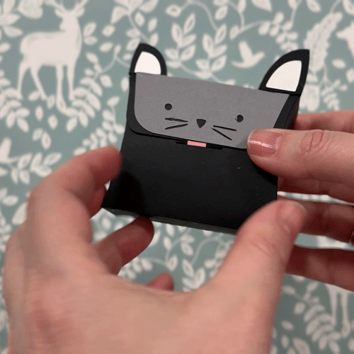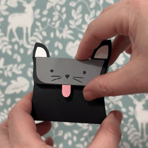 Create an adorable handmade gift with this 3D pillow box digital cut file. This charming paper craft design features a friendly animal face with cute ears and a dimensional pillow box shape that is perfect for gift packaging and party favors.